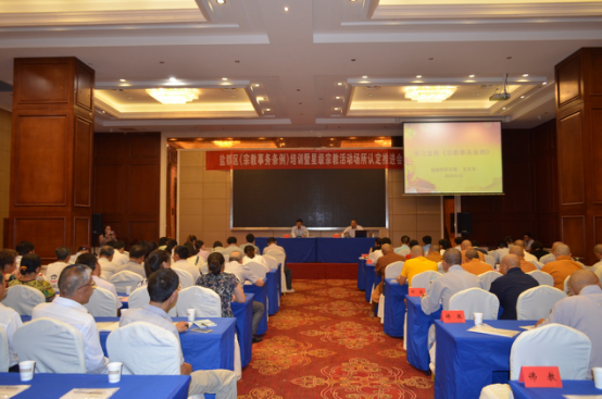 8月15日下午,盐都区民宗局举办全区《宗教事务条例》培训暨星级宗教活动场所认定推进会。全区各镇(区、街道)统战委员及统战工作人员、宗教团体负责人、宗教活动场所负责人、宗教教职人员和神学生共100余人参加了会议。区委统战部副部长刘玉春同志参加并主持了会议。
