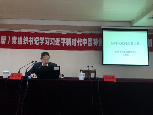 3月25日上午,大丰区在区农业干部学校组织全区村(居)党组织书记学习培训农村宗教工作。培训课上邀请市民宗局副局长王尤东讲授了如何做好新时代农村宗教工作。