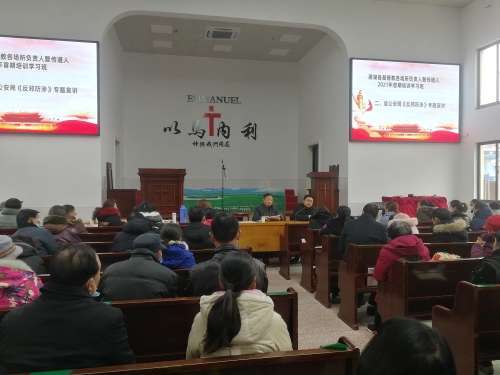 建湖县民宗局分管负责人主持开班仪式,带领全体学员一起学习了《盐城市安全生产条例》,并部署当前疫情防控和安全生产工作;县公安局进行反邪防渗专题讲座,分析当前形势,介绍渗透组织活动的方式方法,学习惩治非法宗教活动的法律法规;盐城市两会名誉主席安孝辉牧师以浅谈基督教中国化、谈“三提”拾“麦穗”、坚决抵御异端邪教等主题授课。