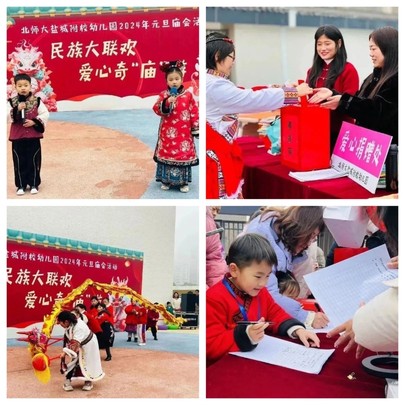12月29日,在新年元旦来临之际,北师大盐城附校幼儿园举行了2024年“民族大联欢 爱心奇‘庙’游”亲子庙会活动。