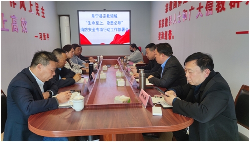 会议强调,一要提高思想认识。要树牢安全发展理念,强化风险意识,坚持底线思维,层层抓好“生命至上,隐患必除”消防安全专项行动组织实施。二要明确工作要求。全县宗教活动场所全面开展向社会作出一份消防安全承诺,开展一次消防安全自查,维护保养一次消防设施,组织一次全员培训,开展一次全员应急疏散演练等消防安全“五个一”活动,并签订《消防安全自查承诺书》。三要强化主体责任。各场所要建立健全内部安全管理制度,加强场所人防物防技防建设,落实各项消防安全防范措施。对存在的问题隐患进行分类排队,逐一制定整改推进措施,明确责任人负责整改,落实闭环管理。确保我县宗教领域安全和谐稳定。
