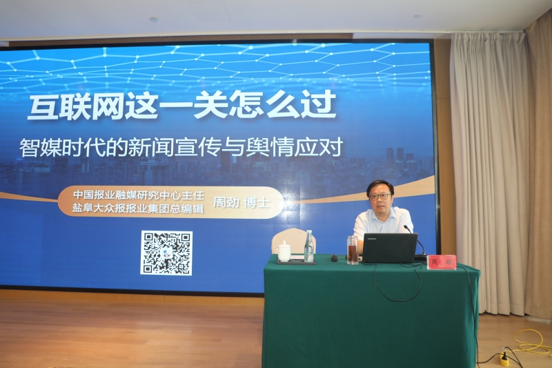 培训班上,盐阜大众报报业集团总编辑周劲以《互联网这一关怎么过——智能互联时代的新闻宣传与舆情应对》为题,从智能时代的传播困境、新闻宣传的“飞行技巧”、突出舆情的应对策略三个方面谈了新闻宣传与舆情应对工作的理论研究和实践探索。