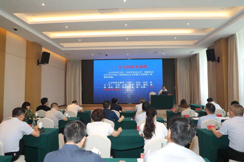 盐城市政府办公室文电处处长倪士城以《党政机关公文写作实务》为题,从公文种类、公文要素及格式、常见公文写法、常见错误与分析等四个方面,结合具体实例作了公文写作专题辅导。