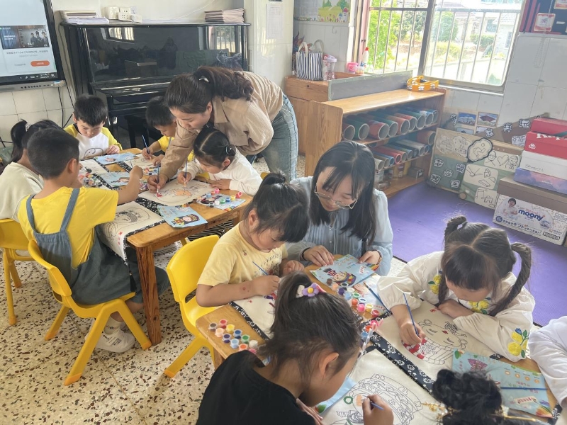 经过一个多小时的努力,一个个身着各种民族服饰的人物呈现在画布上,色彩斑斓,栩栩如生,展现出了欣欣向荣的民族大团结氛围。“本次活动寓教于乐,不仅丰富了孩子们文化生活,还在孩子们的心中播下了美好的种子,让他们在潜移默化中接受爱国主义教育,希望多多举办这样的活动!”特庸镇实验幼儿园老师李禺说道。