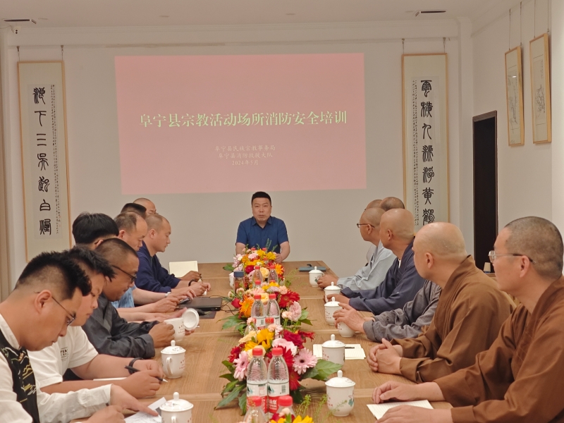 为切实开展好“安全生产月”消防宣传工作,推动落实宗教场所主体责任和安全员安全生产责任,提高全县宗教活动场所的消防安全意识和应急处置能力,5月29日和6月4日,阜宁县民宗局联合县消防救援大队分2期为全县宗教活动场所负责人、安全员开展消防安全知识培训,县民宗局副局长王守勇主持会议并开展安全宣讲。