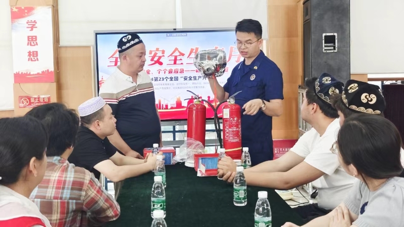 开展此次活动,旨在通过安全知识的普及和分享,增强少数民族家庭的安全防范能力,共同营造安全、和谐的社区环境。本次宣讲邀请区消防救援大队教官许乾玉主讲,重点围绕家庭安全、消防安全、防盗防骗等方面进行系统讲解;同时,针对日常生活工作中可能遇到的安全隐患和特殊情况,提出了具体的防范建议和应对措施,并手把手地教大家对相关安全设施器材进行实践操作。